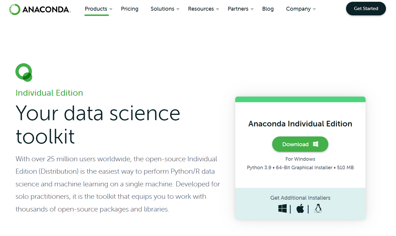 Anaconda's open-source Individual Edition is the easiest way to perform Python/R data science and machine learning on a single machine.