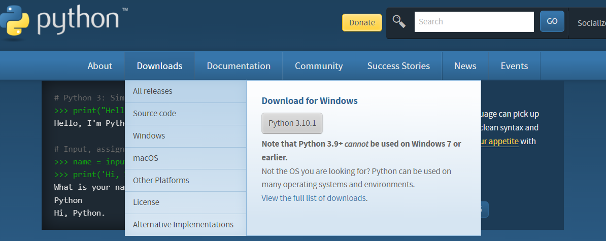 파이선을 처음 시작하려면, 파이선을 설치해야한다.